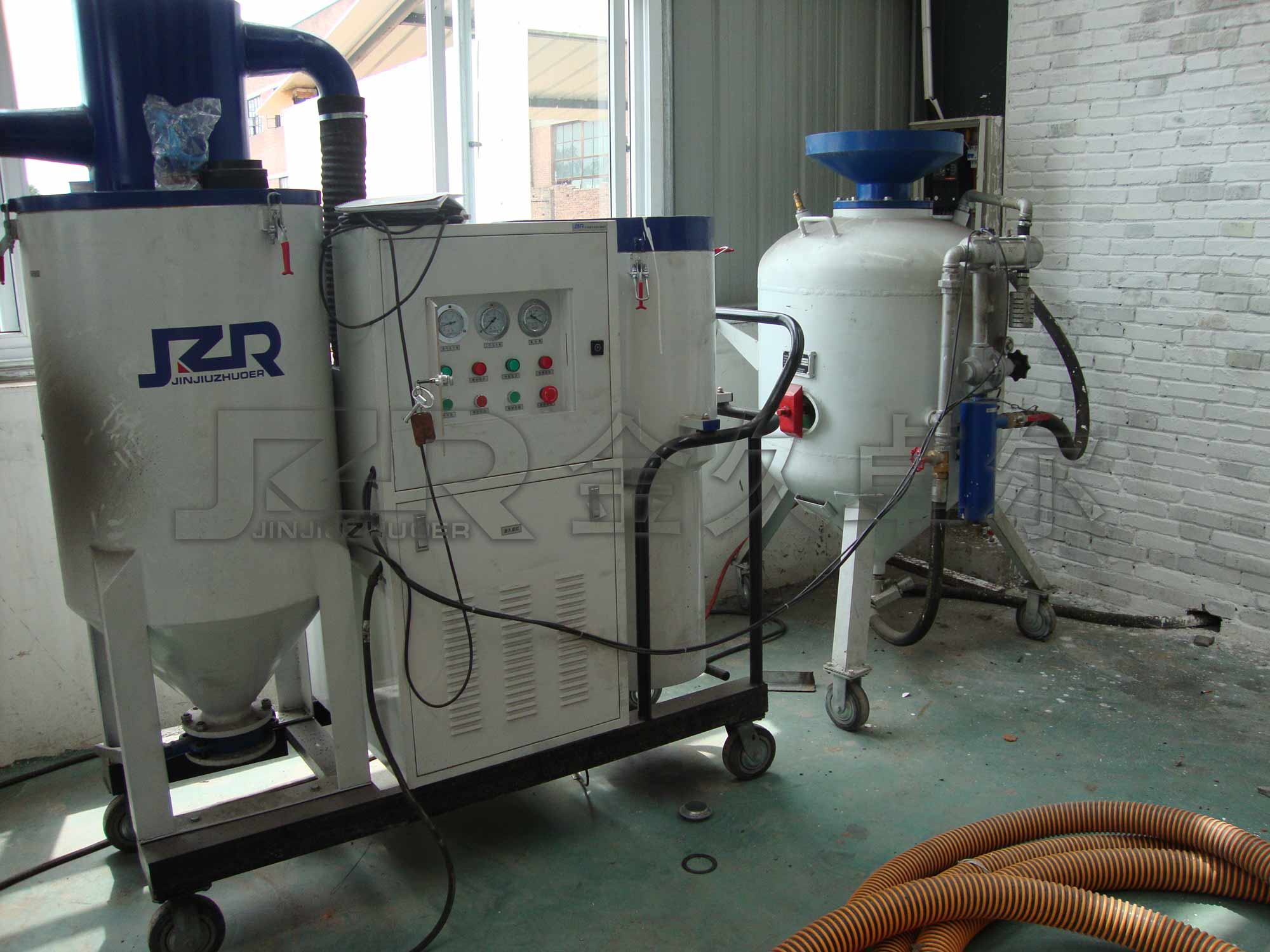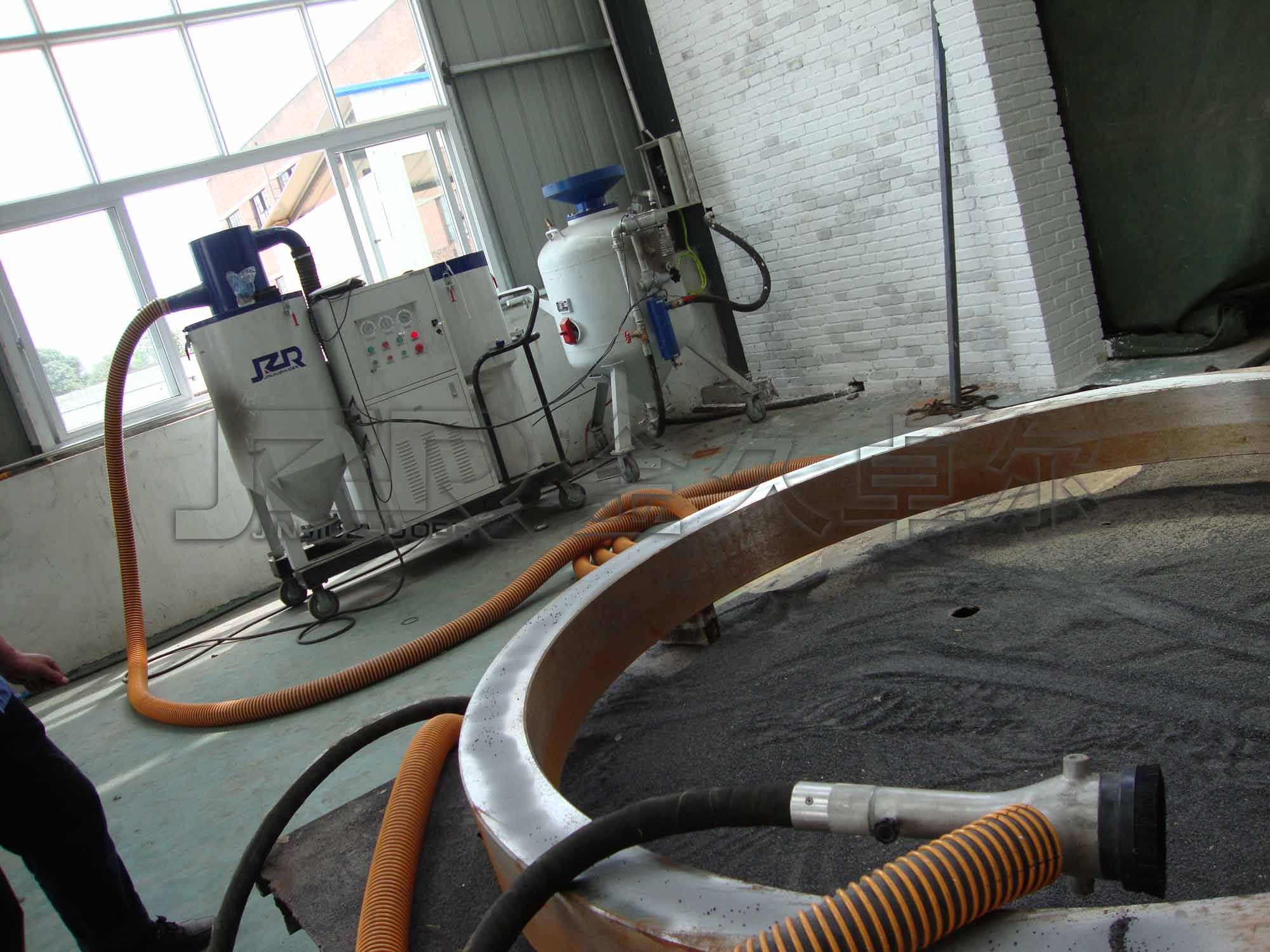 JZF系列噴砂機(jī)是一種一機(jī)多用的噴砂設(shè)備,它同時(shí)具備開放式噴砂機(jī)、自動(dòng)循環(huán)回收式噴砂機(jī)、吸砂機(jī)、除塵器的 幾種功能。它可以單獨(dú)啟用其中任一功能。當(dāng)開放式噴砂機(jī)作業(yè)時(shí),如果同時(shí)啟動(dòng)回收系統(tǒng),即成環(huán)保 循環(huán)回收式噴砂機(jī),可以無塵噴砂作業(yè),避免因粉塵污染對(duì)工作現(xiàn)場(chǎng)和人員健康造成危害,大大降低了勞動(dòng)強(qiáng)度,提高了工作效率 。廣泛適用于集裝箱制造修理、造船和修船,工廠維護(hù)以及需要野外施工、搬運(yùn)、進(jìn)入大型工件、油罐、 車體內(nèi)部噴砂除銹作業(yè)。