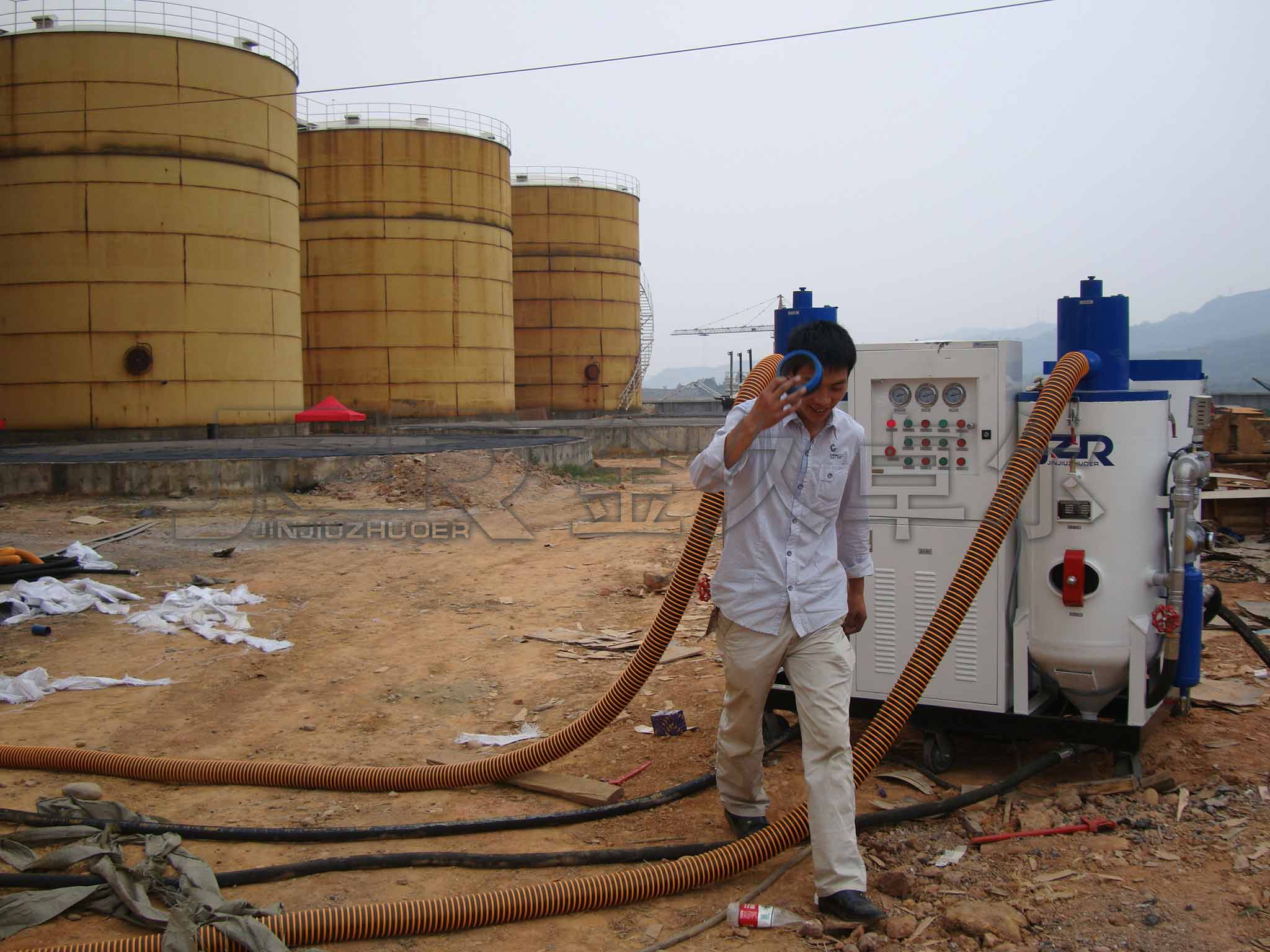 ● 蘇州瑞帆環(huán)境工程無塵噴砂作業(yè)    使用JZR-500II型雙槍無塵金久卓爾噴砂機(jī)